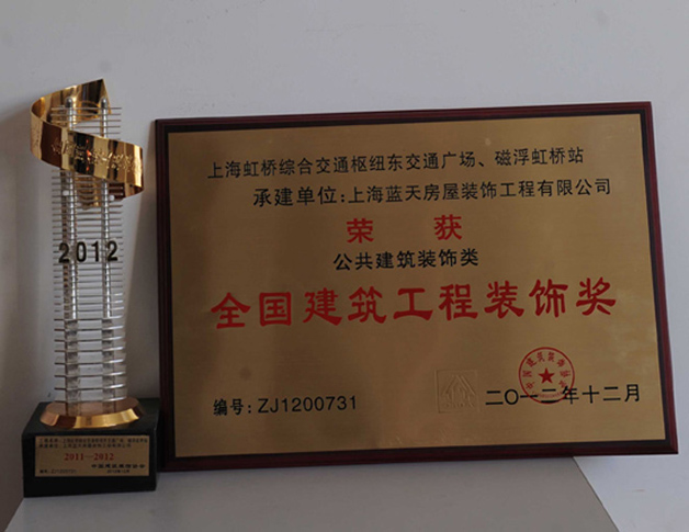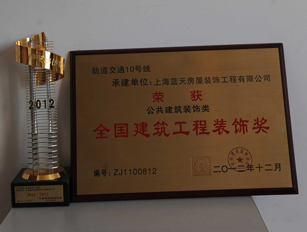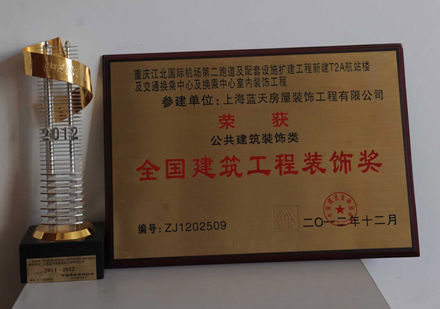 2012年12月,藍天公司捧回了4個全國建筑工程裝飾獎,分別是軌道交通10號線工程、杭州蕭山國際機場二期項目一階段國際航站樓工程、重慶江北國際機場第二跑道及配套設施擴建工程新建T2A航站樓及交通換乘中心及換乘中心室內裝飾工程、上海虹橋綜合交通樞紐東交通廣場、磁浮虹橋站工程。