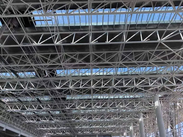 大跨度桁架空間吊頂施工引進“逆作法”理念,摒棄傳統(tǒng)施工,依托鋼結構桁架下弦桿為受力支撐桿,鋪設鋼跳腳手板高空操作平臺,配合地面吊裝裝置,實現(xiàn)吊頂整體安裝就位作業(yè)全部在吊頂背部完成,無需地面搭拆滿堂腳手架,將立體交叉施工降低為零,極大的提高了施工效率,減少了施工過程中成本投入,縮短了施工工期。
