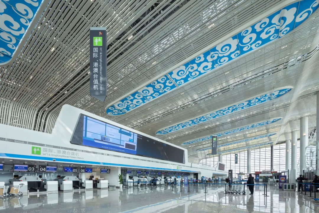 連云港花果山機場航站樓為兩層半前列式構型,我司承接機場航站樓整體裝飾裝修工程,主要包含國內(nèi)/國際航站樓功能、貴賓區(qū)、地下?lián)Q乘大廳等。